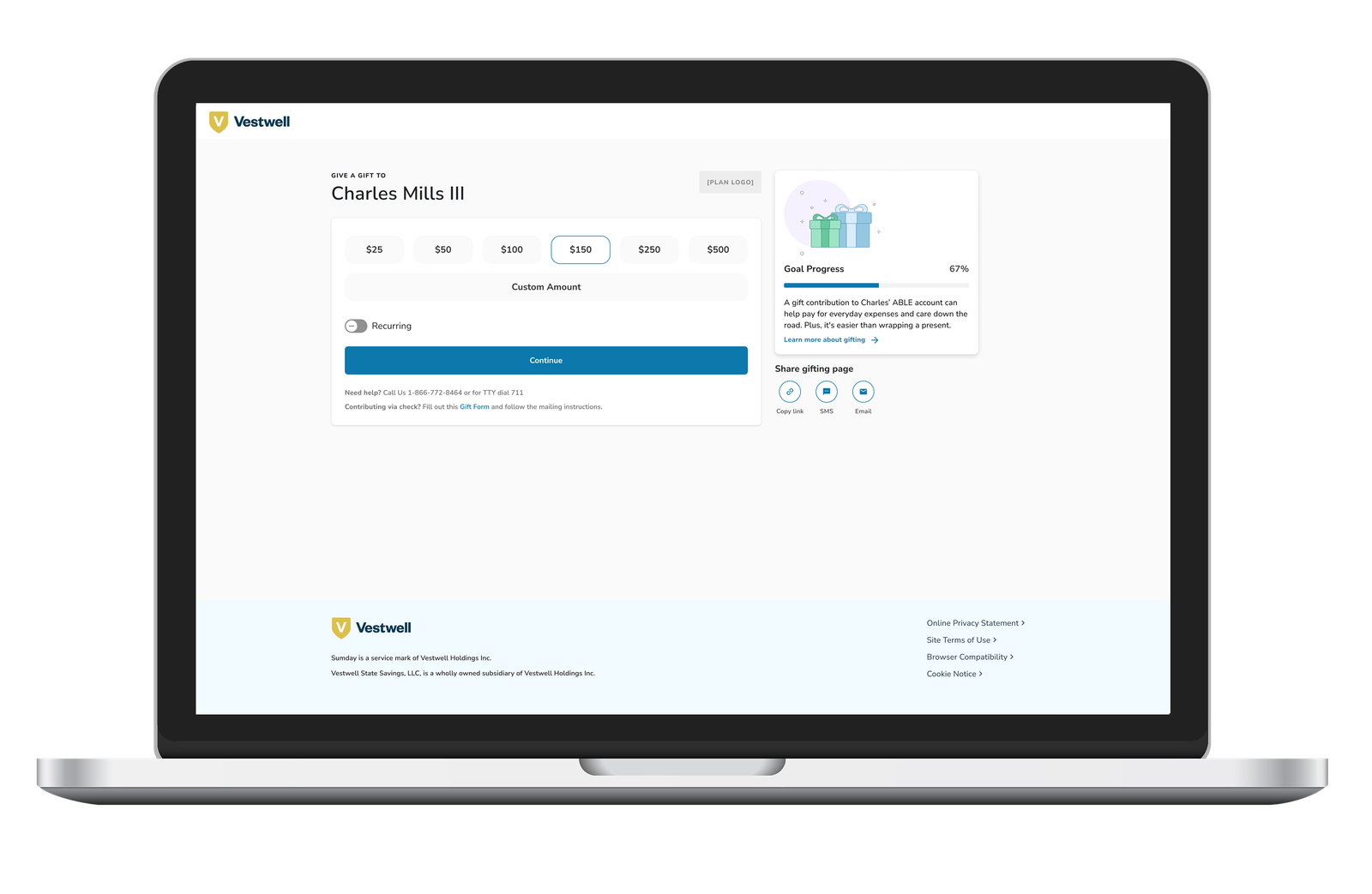For easier gifting, family and friends can create a gifting profile to save their banking information or set up recurring gifts to regularly contribute at specific times.